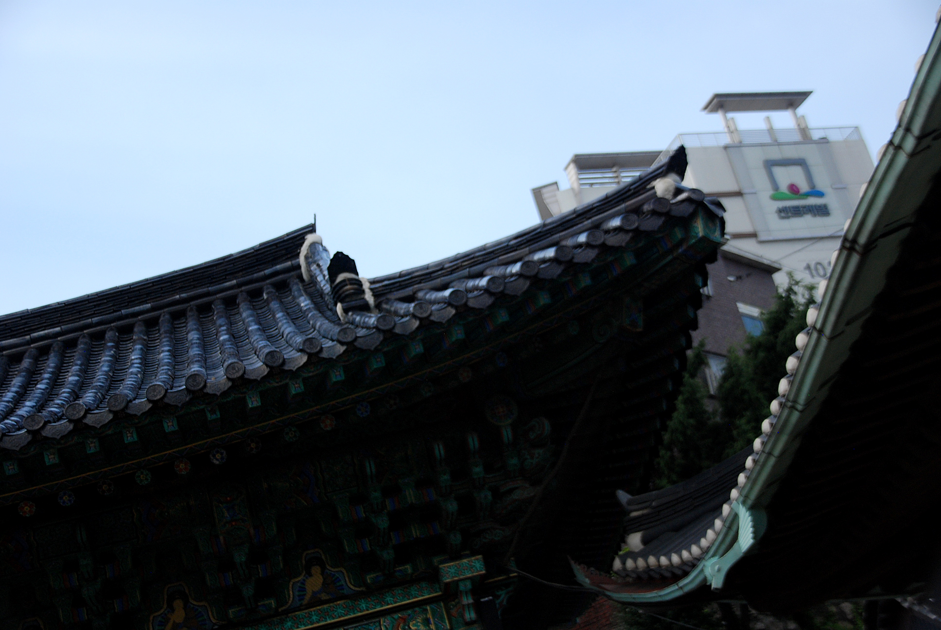 The further south we headed, the closer to Dongmyo, the more gentrified the surroundings got and the more the storefronts were occupied by large chains. A giant Lotte apartment complex could be seen up ahead on the corner, but off to the west the same views for much cheaper were enjoyed by the occupants of the old brick homes perched on top of the cliff and those further towards Daehangno, spread along the slopes of Naksan (낙산) like homes in an Italian hill town.