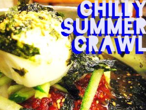 Following our guide 10 Ways to Survive a Korean Summer, we’ll beat the heat with some of the best summer Korean summer dishes. This includes a spicy icy sashimi soup from Jeju Island, chilly noodles from Gangwon province, old fashioned shaved ice with goodies, and a favorite for the rainy season–crispy mung bean pancakes with some fresh dongdongju rice beer!