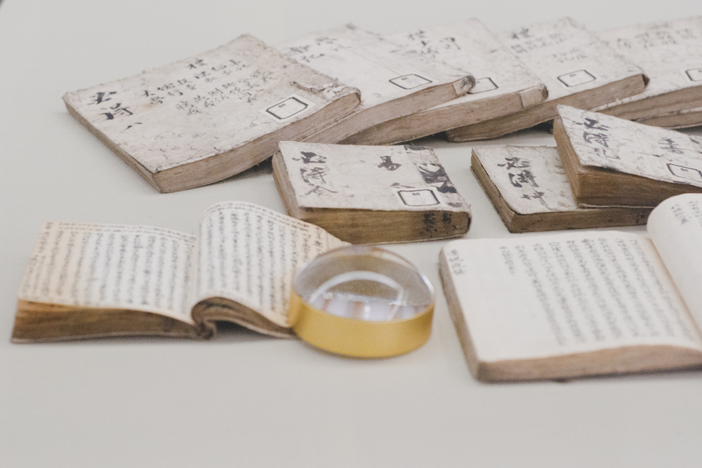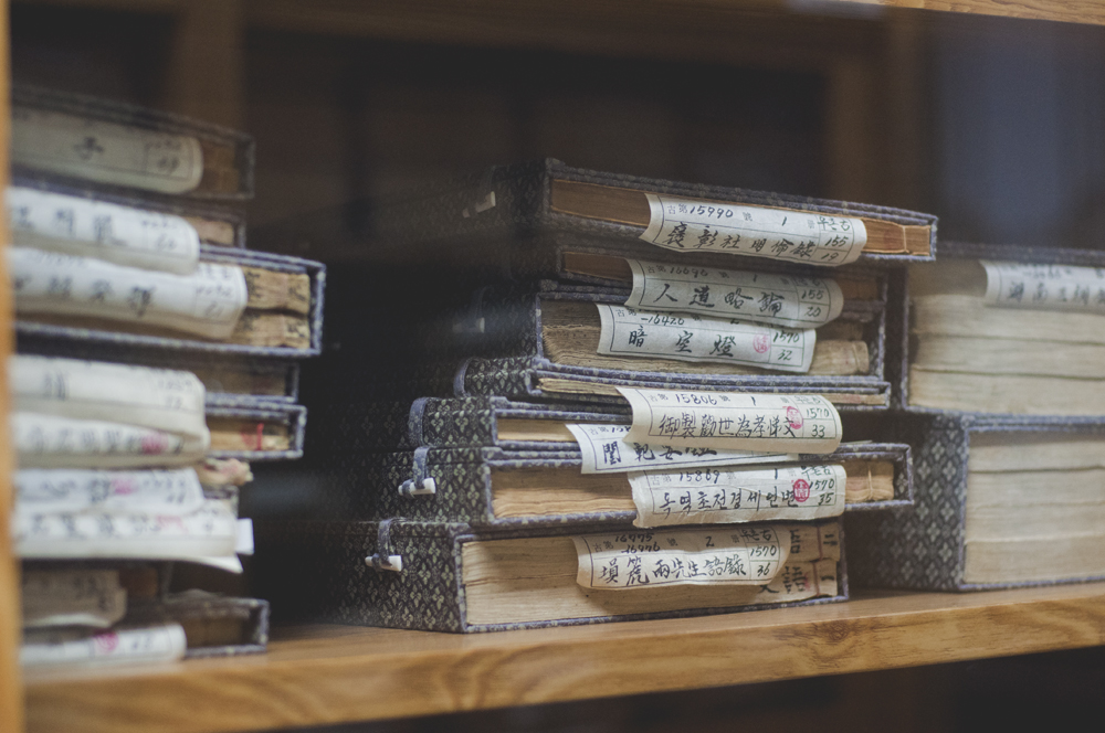 Thankfully, I was only 67% out of luck, because the Old and Rare collection on the sixth floor was open. In display cases by the door were an anthology of Zen teachings from 1377 and a Dharani sutra wood block print from 751. Inside, a half-dozen old men sat at tables flipping through even older books, and stacks of yellowed and worn books, most bound with string, lined rows of wood and glass cabinets. In the center of the room was a temporary display of materials from the Joseon era that included answers to exam questions and study manuals for those preparing for medical, military, and astronomical tests.