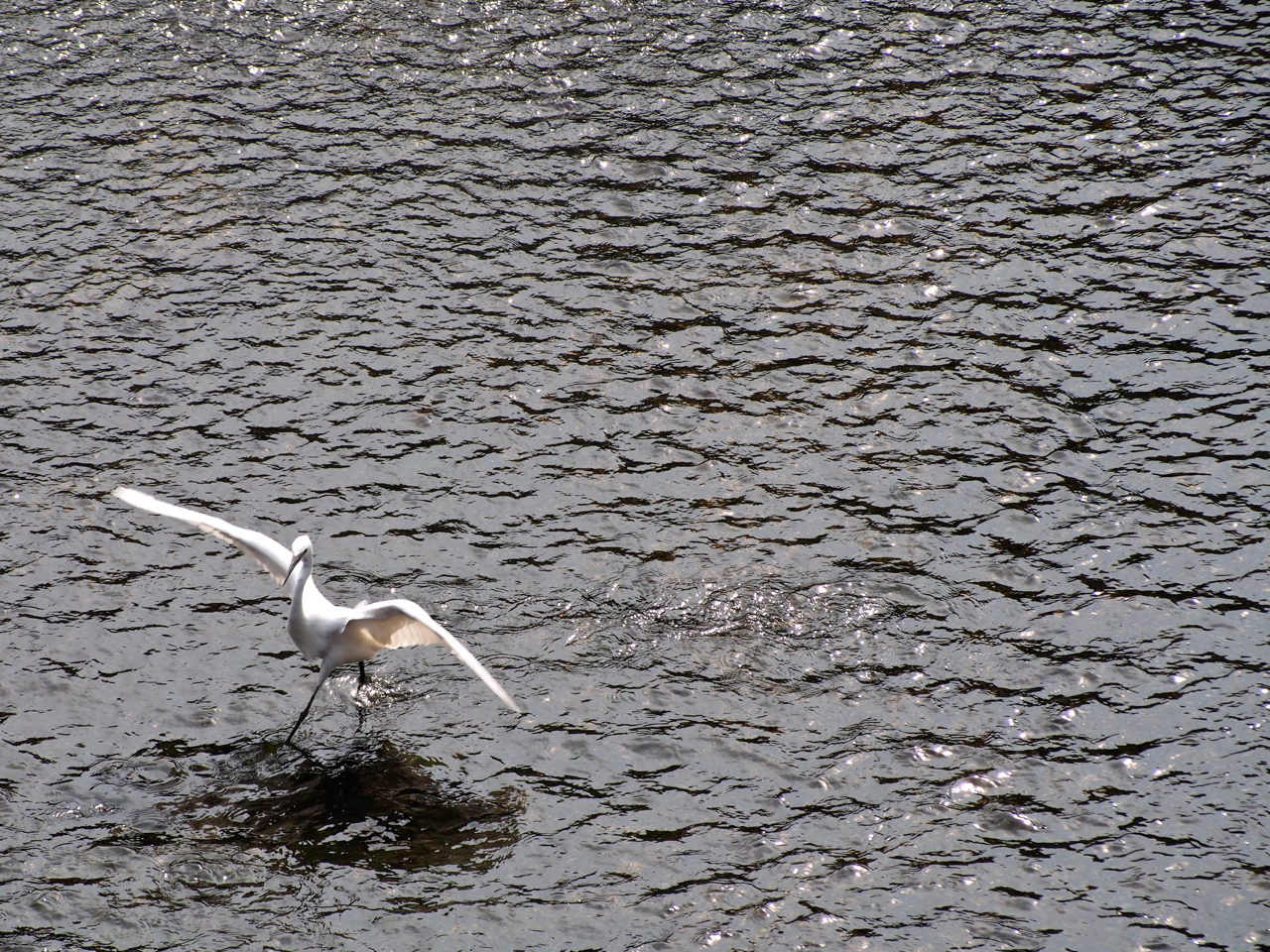 Two groups had no qualms with this, though. One was the bikers, enough of whom zipped up and down the path here that a guy had set up a table under the bridge, selling biking equipment out of the back of his van to passing riders. The other was the wading birds. I spotted at least a dozen snow white herons and a couple of egrets in the water.