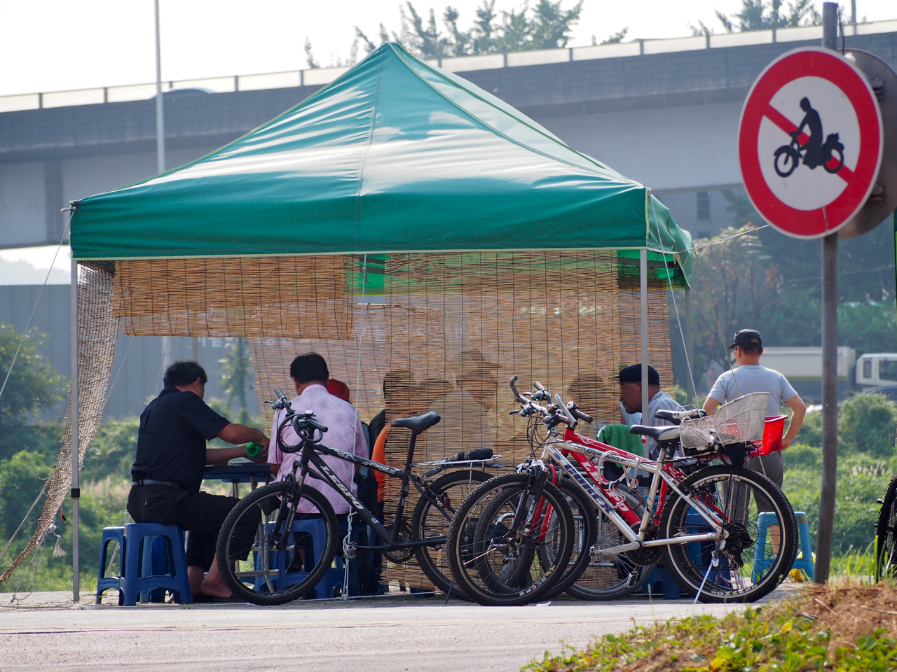 Back at the station I went east from Exit 3, past apartment towers and a woman selling steamed corn from a street stall, and after about 500 meters I reached the Jungnang Stream (중랑천). I have to admit, the Jungnang is probably my least favorite stream in the city; in most places there are no facilities, save exercise equipment and a bike path, and it’s buffeted on both sides by highways for virtually its entire length through the city.