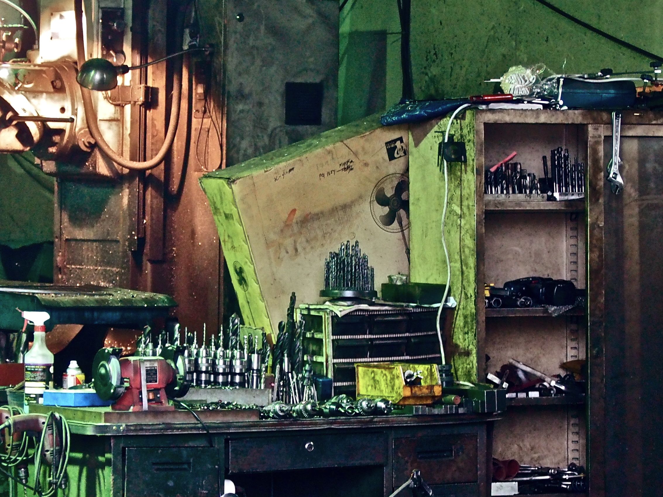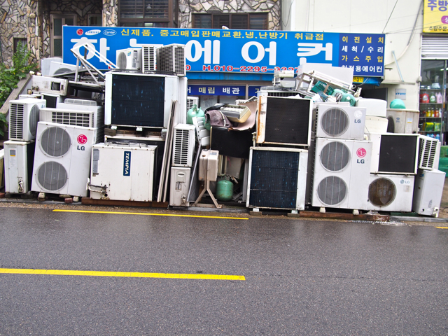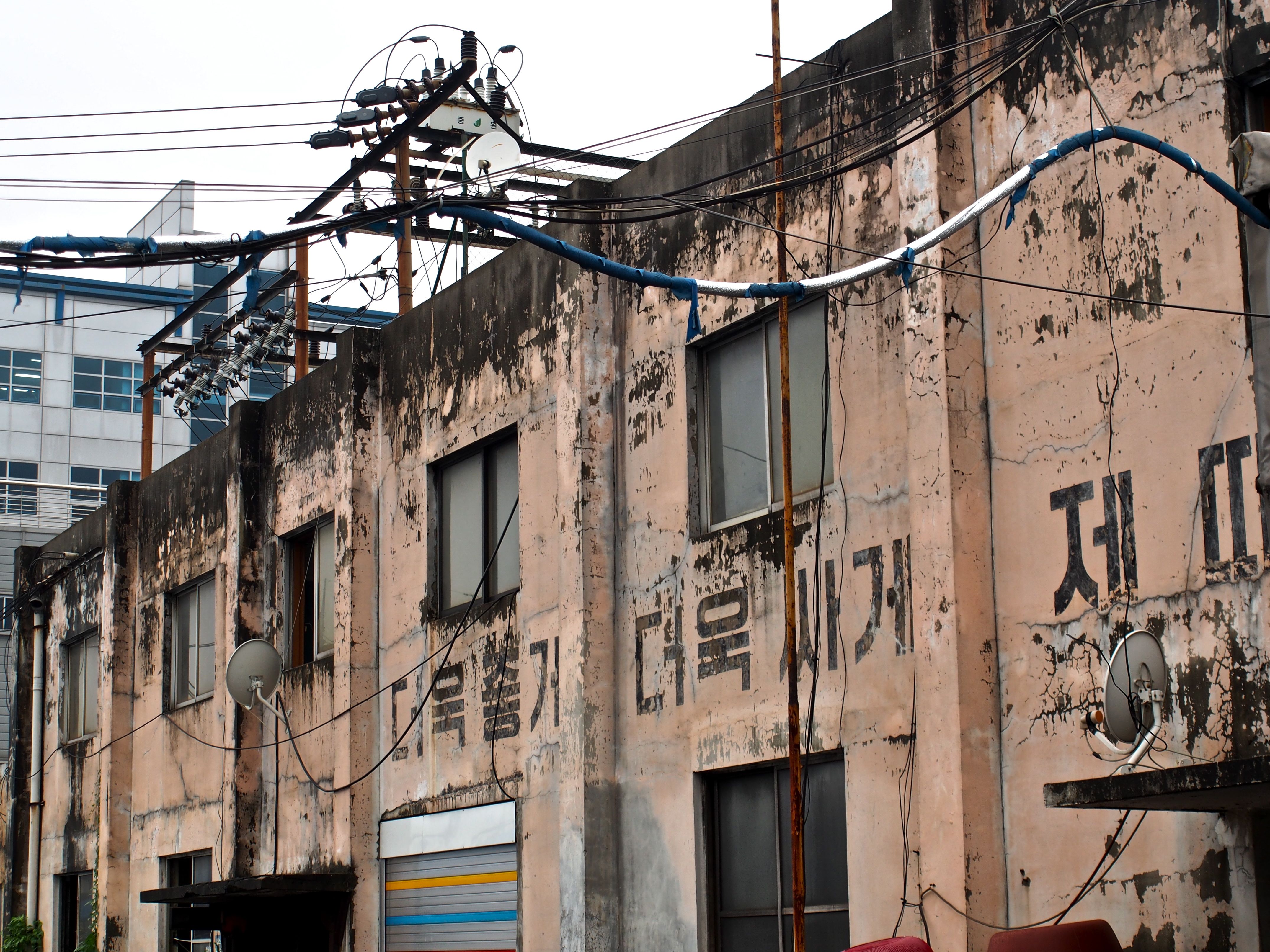 The sky was overcast and heavy, ideal weather for walking through an industrial zone, and I began to wander up and down the roads between factories.  The area was reminiscent of Mullae, but more centralized and more consistently active.  Manufacturers here made metal, glass, springs, and mirrors; the smells of glue, chemicals, oil, and the bitter tang of hot metal filled the air; pulleys, winches, and front end loaders moved things from where they were to where they needed to be.