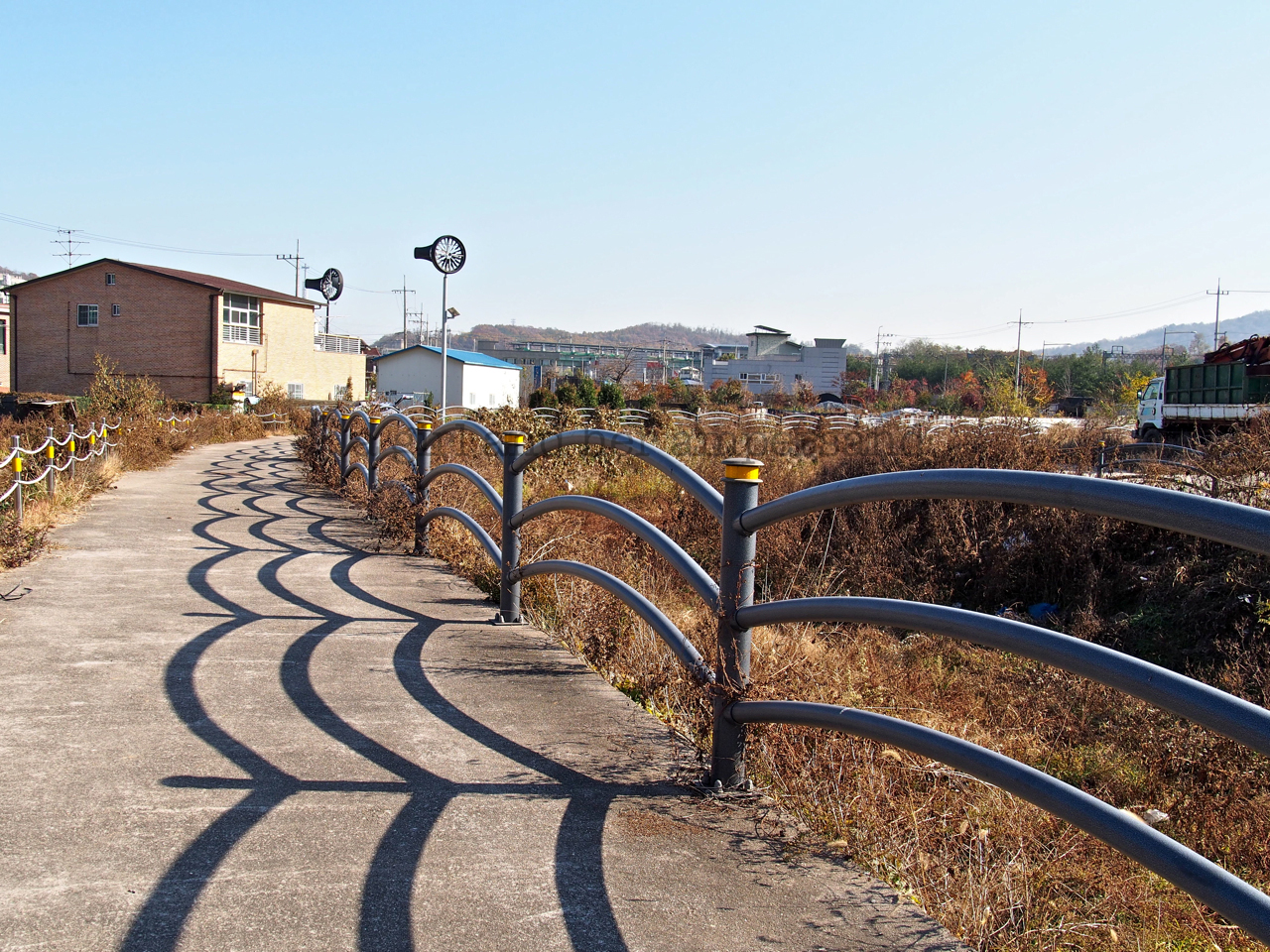 The last stop on Line 6, Bonghwasan Station sits right alongside the Northern Trunk Road (북부간선도로) and there’s a transfer parking lot outside where commuters from Namyangju and Guri can drop their cars before jumping on a train for their jobs in the city. The sprawling Korean Military School (육군사관학교) lies just north of the station, but the trunk road makes it inaccessible and pretty well prevents pedestrians from getting to anything else save for a little sliver of stream and urban farmland to the northeast. It was here that I started my visit, taking the first left out Exit 2, and walking down to a bike path along the watercourse. This wasn’t much, near dry, but it was lined with wildflowers and buzzed over by dragonflies. After a short ways both the path and the stream ended rather abruptly, though the former continued on the opposite bank, running past the reeds and aquatic bushes that stood exposed in the dried-out stream bed.