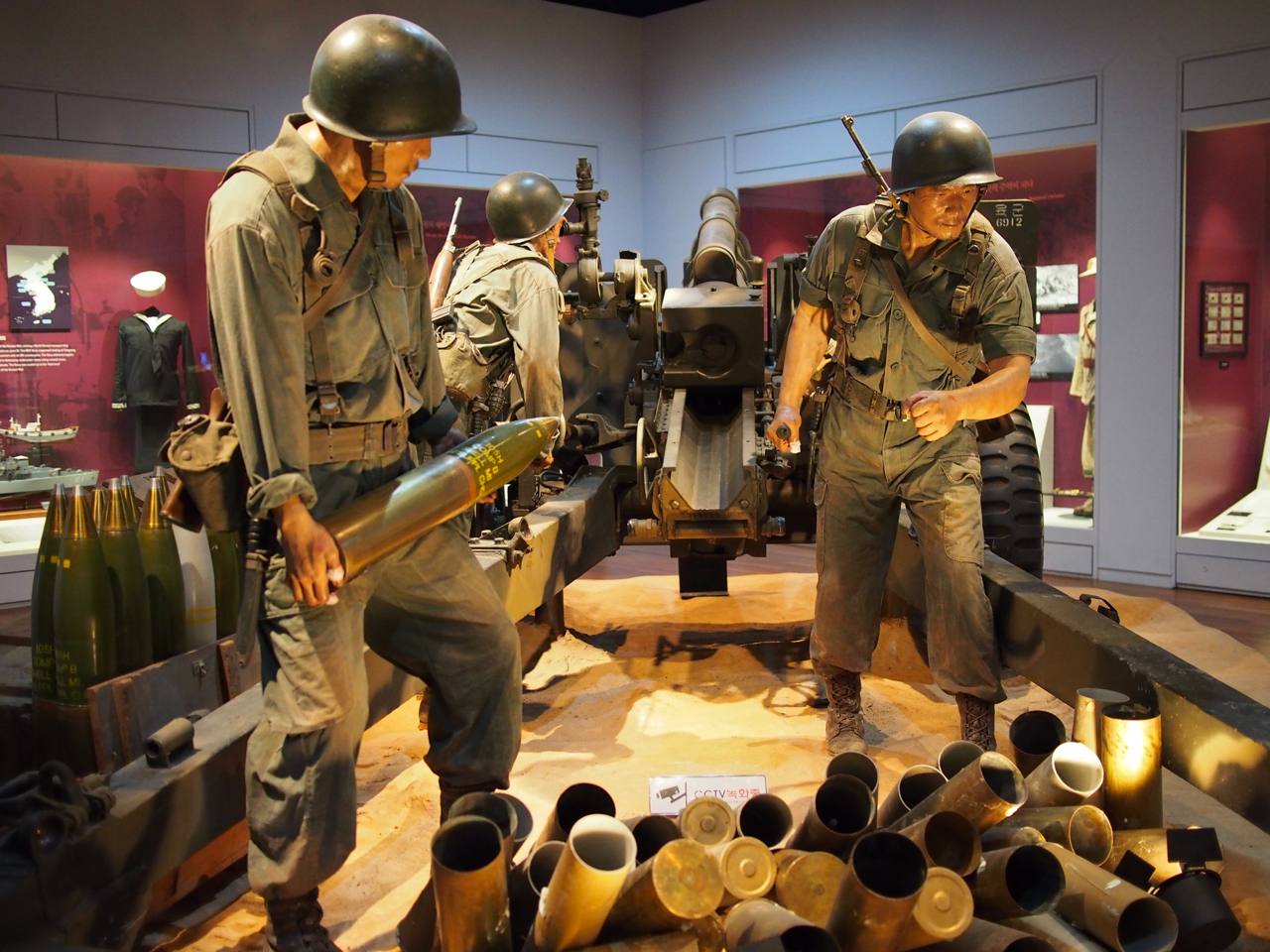 Finally, visitors arrive at the Expeditionary Forces Room and the ROK Armed Forces Room, which document the South’s military post-Korean War. Displays cover the army’s roles in Vietnam, the 2003 invasion of Iraq, and peacekeeping missions in Somalia and East Timor, among others. Space is also devoted to the ongoing incidents of North Korean provocation, including the 1968 attempt to infiltrate the Blue House and assassinate Park Chung-hee, and the more recent shelling of Yeonpyeong Island (연평도) and the sinking of the Cheonan (천안함). And just to keep you from getting too comfortable there’s also an explanation of what would happen if a one-megaton nuclear weapon were detonated in Seoul. Spoiler alert: everybody dies.