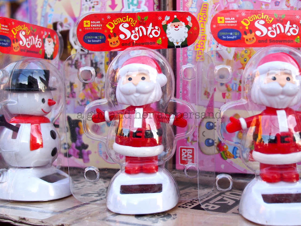 I turned back toward the station, drifting back and forth between the new buildings and shoppers on the main avenue and the smaller back streets and their modest apartments. Clustered on some of those back streets near the station was Cheonho Stationary Town (천호 문구•완구거리). Just outside of Exit 1, the first street on the right was marked by a gate of curving pencils and a little book character improbably throwing up devil horns with one hand. Beyond it were a number of shops, all with some sort of cute cartoon character – pencils, markers, schoolchildren – on their signs. Almost all of them were closed on Sunday, but judging from those that were open they were as much toy stores as they were stationary shops.
