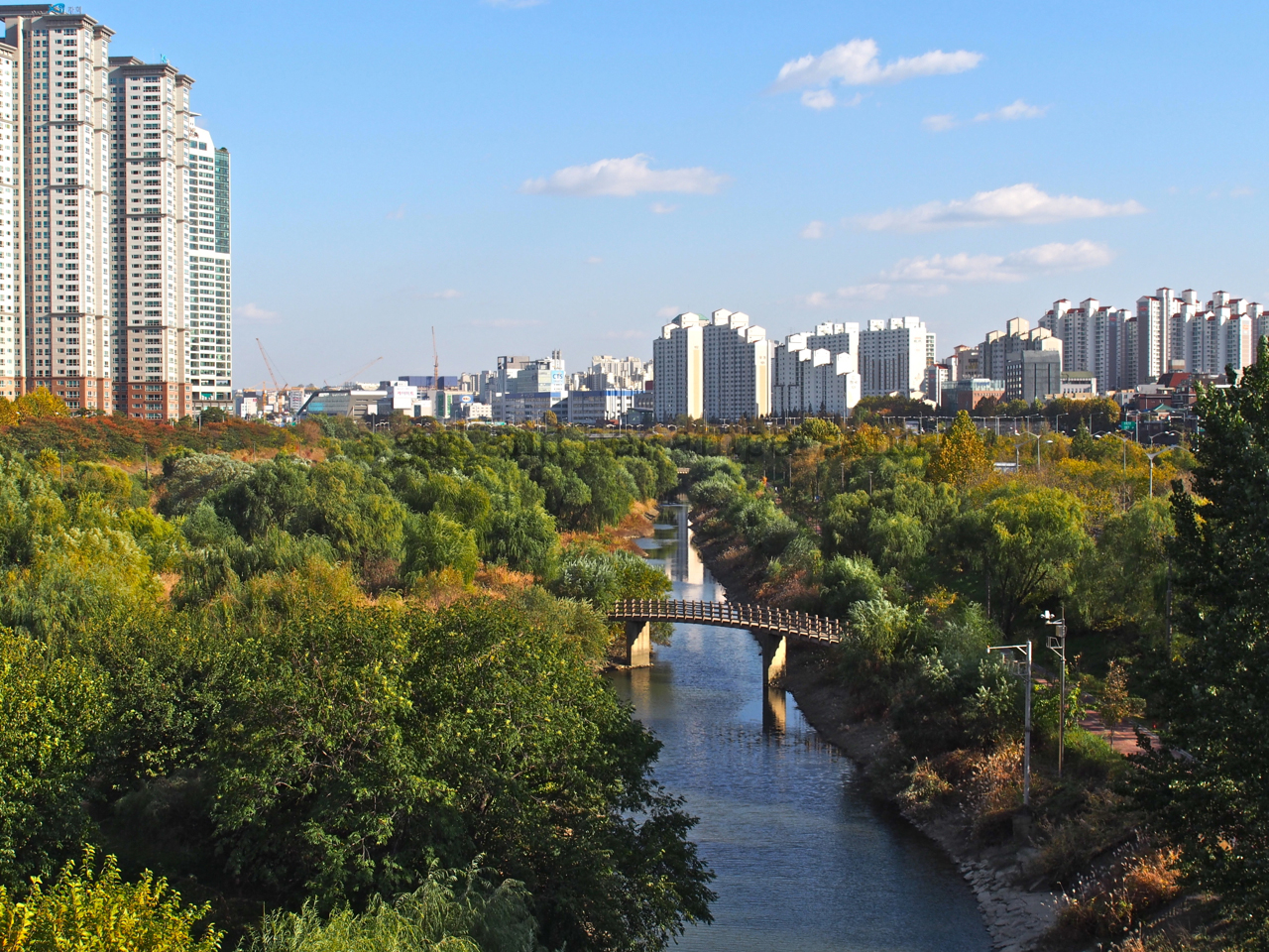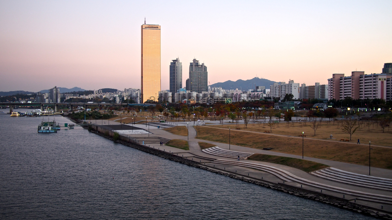 The word saetgang (샛강) is one of those uber-specific words, like schadenfreude or 木漏れ日 (komorebi) (the Japanese term for the dappling effect of sunlight filtering through trees), that makes you feel your own language is missing out. It refers to a small channel or tributary in a river that separates an island from the mainland, the island in this case being, of course, Yeouido. Providing access to the southeast corner of the island, Saetgang Station puts visitors within easy reach of much of what the other stations on the island do: wide New Seoul boulevards, glass and steel office towers, and tree-lined side streets full of identical apartment buildings. First floors hold cafes or restaurants, while bars or noraebangs for the local salarymen are found in basements. There’s also the landmark 63 Building a short walk away, but best of all Saetgang also drops you off right by some of the island’s superb parkland.