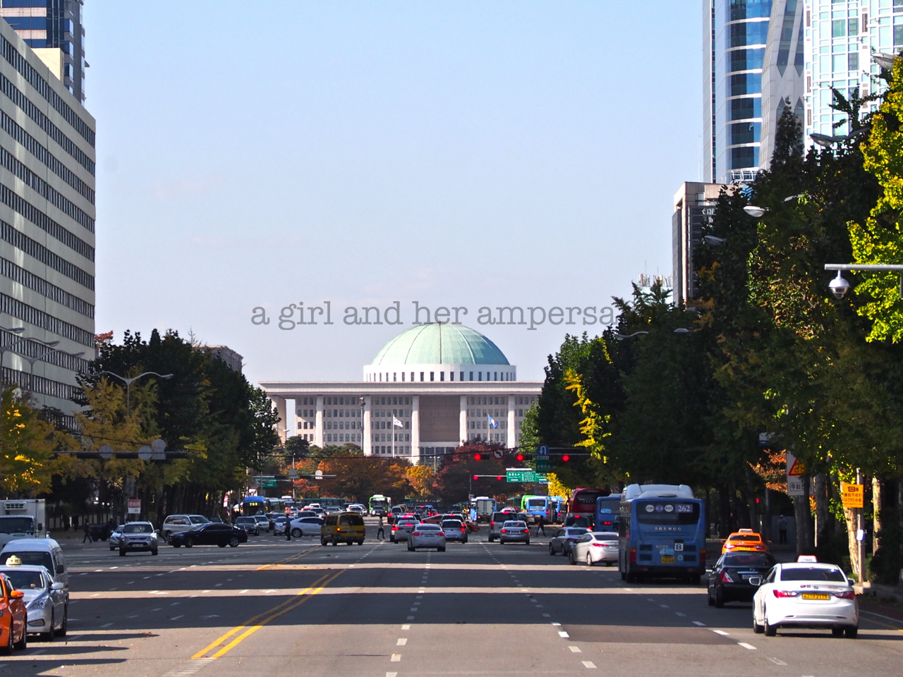 Back out Exit 3, I passed Ankara Park and, just after that, the Indonesian embassy, before turning right on Gookjegeumyoong-ro (국제금융로) and then left on 63-ro (63로). Alongside the blocks of repeating apartment towers the street was lined with gingkos, their leaves turning marigold in the fall as if to mimic the neighborhood’s dominant structure, the 63 Building (63빌딩).