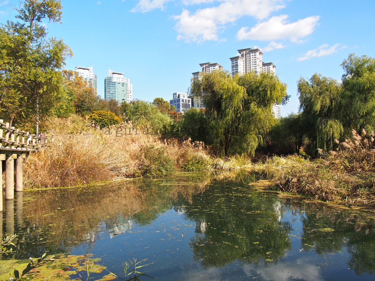 If instead of going into Ankara Park you make a U-turn out of Exit 3, cross Yeouidong-ro (여의동로) (look to your right as you do and you’ll get a clear view of the National Assembly building), and go down a flight of stairs, you’ll find yourself in Saetgang Park (샛강생태공원), one of my favorite in the city. Forming a crescent along the entire southern side of the island, the park runs along and around the narrow waterway that makes the difference between Yeouido and Yeongdeungpo and gives the station its name. For some time this was a rather neglected and unpleasant bit of land, but in the 1990s a major project to transform it into an eco-park was initiated, turning it into the wetland it is today. As I’ve mentioned before, despite being, in a sense, artificial, the park doesn’t feel that way. In fact, in certain spots it can feel like one of the ‘wildest’ places in Seoul. Sandwiched between two major roadways, it’s not as if you’re going to forget you’re still in Seoul – the drone of traffic is ever-present – but within the park non-natural things are kept to a minimum, and compared to other parks Saetgang is under-visited, so there are plenty of opportunities to find yourself utterly alone on its walking paths, at least for a few moments.