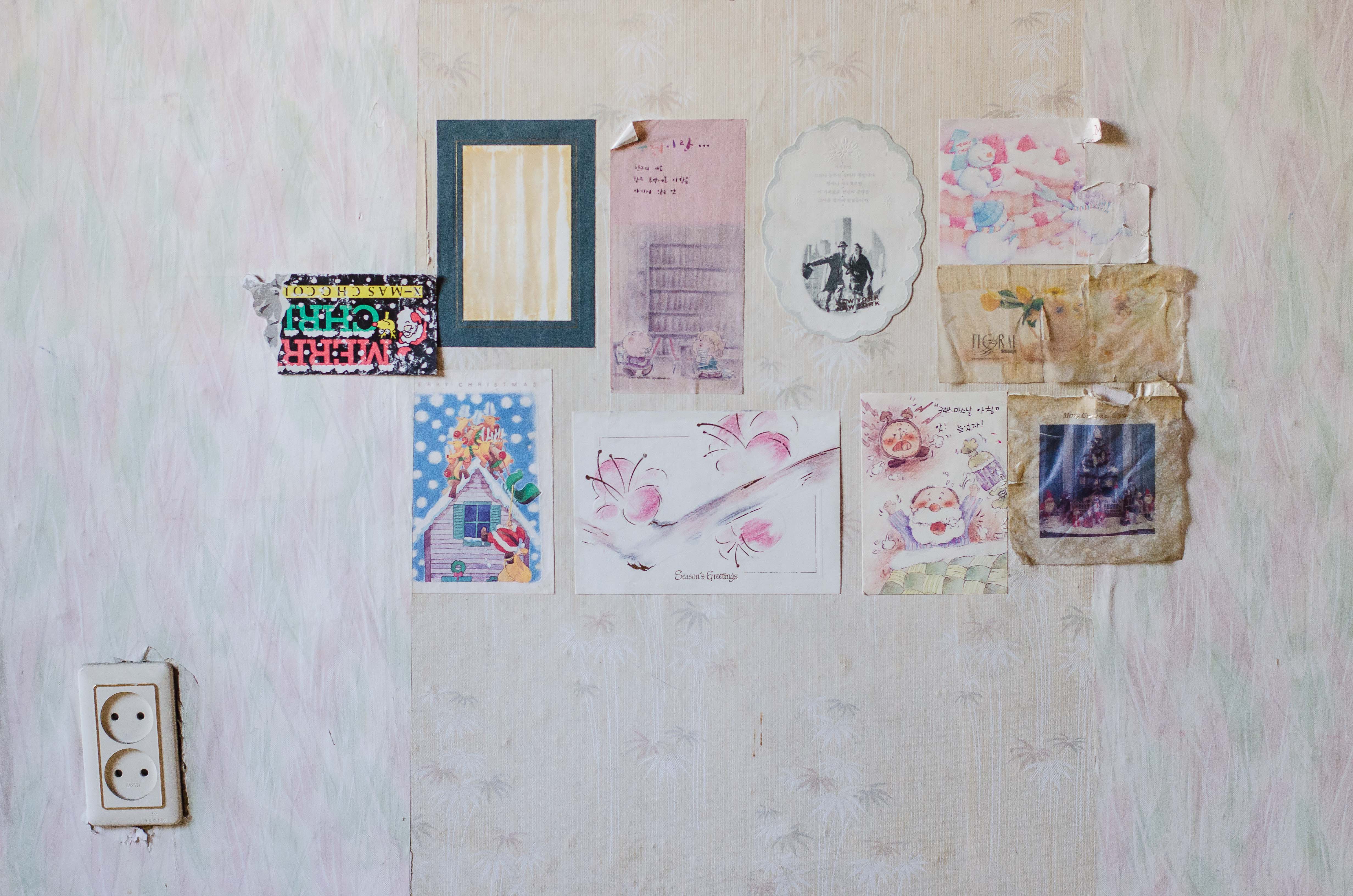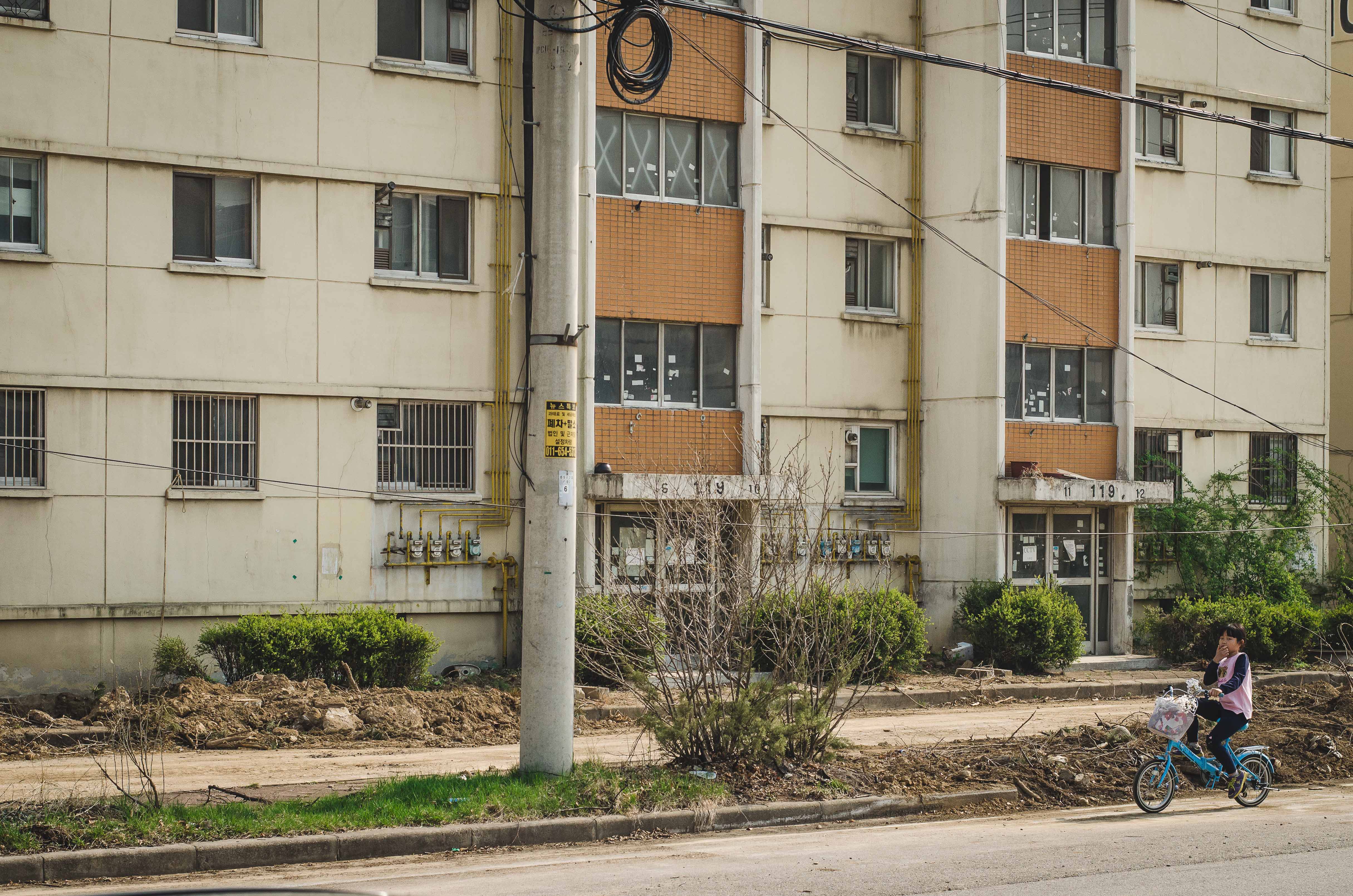 Closer to the subdivision’s western edge I went into another empty tower. A first floor apartment’s door was marked with another large spray-painted X, the mark’s upper arms framing a small red sticker that said ‘고맙습니다 사랑합니다’ (‘Thank you, I love you.’). I tried the door. It was unlocked.