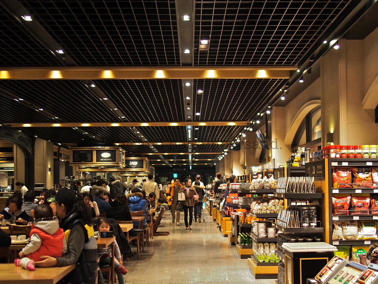 When I first found out that Galleria West had a food court this was yet another bit of confusion.  A food court?  That seemed so…shopping mall.  Wasn’t Galleria, you know, above that?  Then again, Gourmet 494 isn’t your average food court.  Here as well everything is done in a unified décor: simple, clean black and white signs with ash wood trim, grocery store ajummas in prim black and white uniforms and matching pillbox hats.  Jazzy Christmas music, the sort you might hear in the soundtrack to a movie about the holidays of upper-crust Manhattanites, played from the speakers.  No Mariah Carey here.  As for the Lotteria and Dunkin Donuts outlets in the food court…Ha Ha Ha!  What?  You thought there would be Lotteria and Dunkin Donuts outlets here?  Please.  Looks like somebody needs to get out of Yeongdeungpo a bit more.  And, oh, were you doing yard work?  No?  Those are just your regular clothes?  Oh.  Um, anyway.