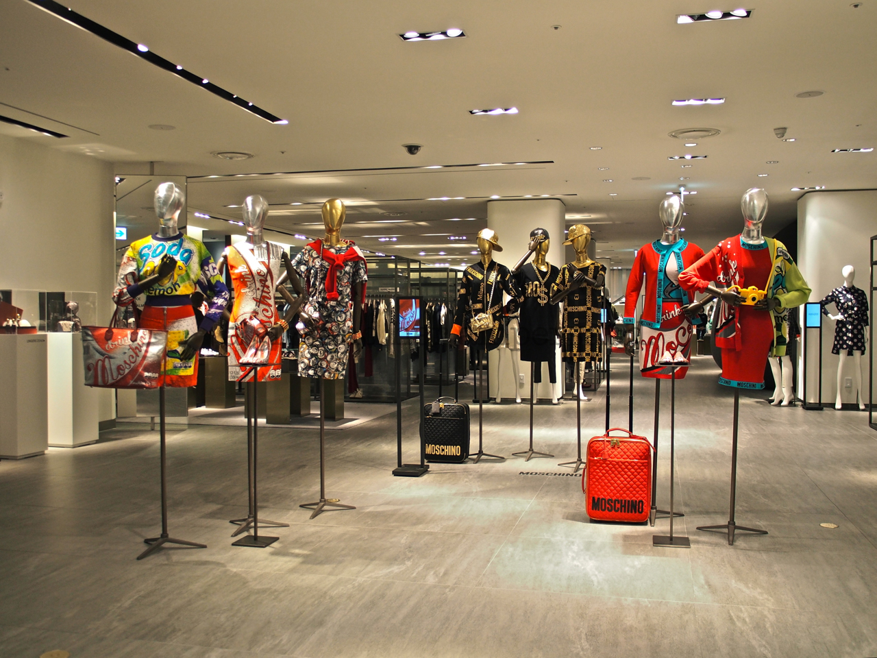 Across the street is Galleria West (갤러리아 West), the flashier younger sibling whose signature façade, slate green fish scale in the daytime, is lit up in shimmering multicolored lights at night.  Outside of Exit 7, the first floor of the building featured displays for Prada and Gucci, whose handbags and cosmetics shared space with other similarly exclusive brands inside.  I made my way upstairs, sticking close to the escalators so that I didn’t have to think about those questions too much.  The second through fourth floors were sectioned into individual boutiques, though you had to look closely to notice, as the open floor plan and uniform minimalist black clothing racks gave the appearance of a single unified space.  Above the clothes, the fifth floor, the ‘Creative Lifestyle’ floor, was filled with clocks, toys, furniture, incense, and other expensive knickknacks.