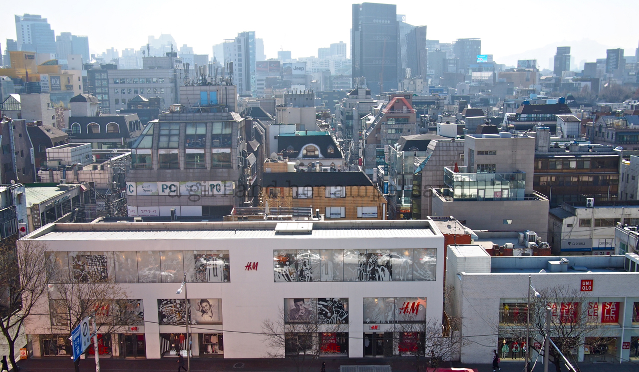 Apgujeong-ro (압구정로), the avenue running in front of the Gallerias, was lined with half-denuded trees and traversed by a higher than average rate of BMWs, Mercedes, and Audis.  To the northwest, the area between Galleria West and the Han River was taken up by apartment blocks, surprisingly modest for their location.  They were decent but not any different from complexes you see in many other parts of town, and many of the structures were actually starting to look a bit shabby, in need of a paint job at the very least.  Not many other complexes have Maseratis and Porsches parked outside, though, nor do most have hanwoo-specific butchers or organic grocery stores on the corner, as the apartments here did.  Needing a drink I popped into a convenience store and in lieu of the usual K-pop soundtrack the store was playing classical music.  Less high-class than trying just a bit too hard, I thought.