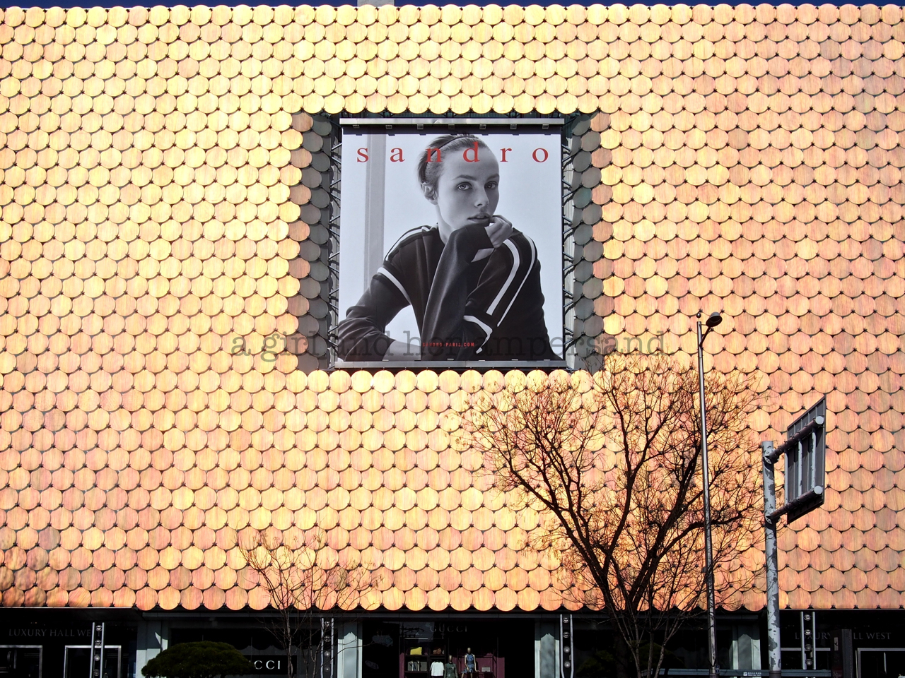 Apgujeong’s affluence is anchored in the twinned Galleria Department Store (갤러리아 백화점), split by Seolleung-ro (선릉로) into two structures that parallel the divide between Old Money and the nouveau riche.  Galleria East (갤러리아 East), accessible via Exit 1, is the original half, its design typical luxury department store, elegant but hardly understated, lit up in Christmas lights for the holiday season and hosting a gaudy installation of enormous silver candy canes on the corner outside.  Inside, clothes and jewelry tend to follow a classic, European-influenced line.