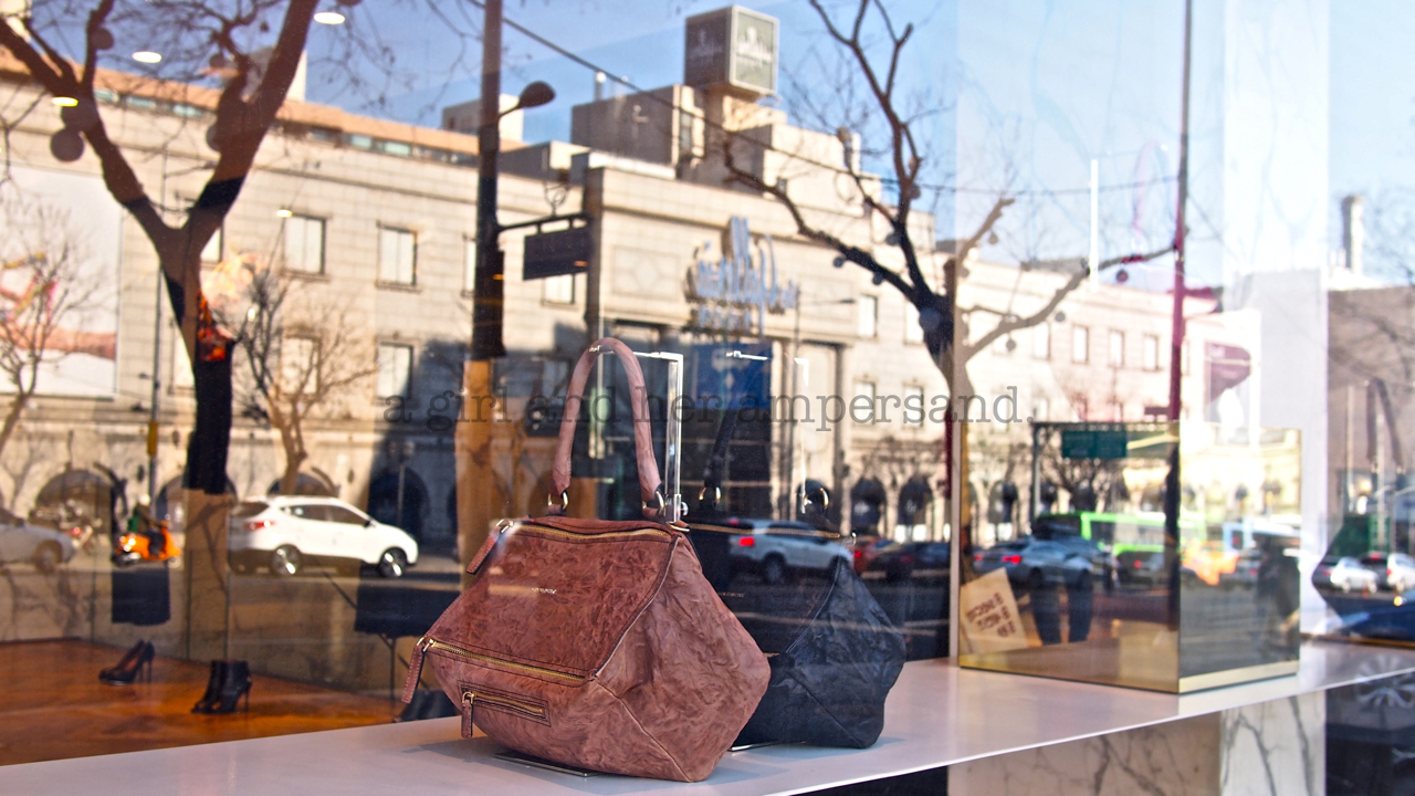 More so than any other neighborhood I’ve been to, Apgujeong drips with money, and money, especially to those without a lot of it, is its own source of confusion.  So in Apgujeong one wonders.  Who are the people that shop here?  How did they get so much money?  Should I act differently here?  Like I have money?  Like I don’t care that I don’t?  Like I’m just passing through on my way to a more modest neighborhood?  Is it OK to go into this store?  Will the staff know I’m not going to buy anything?  Will they be annoyed?  Will they sympathize?  Will they care at all?